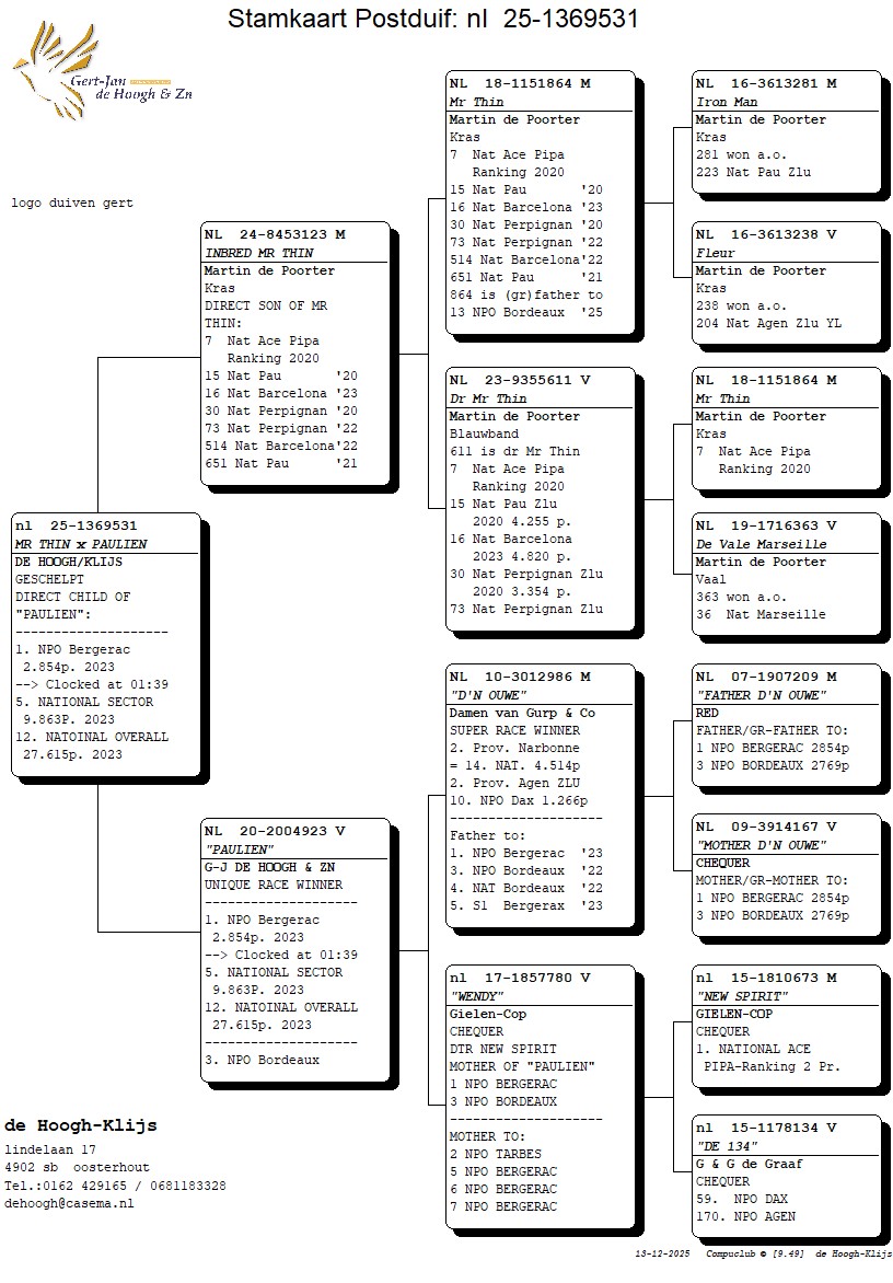 FATHER INBRED MR. THIN (MARTIN DE POORTER) 7.NAT. ACE PIPA RANKING