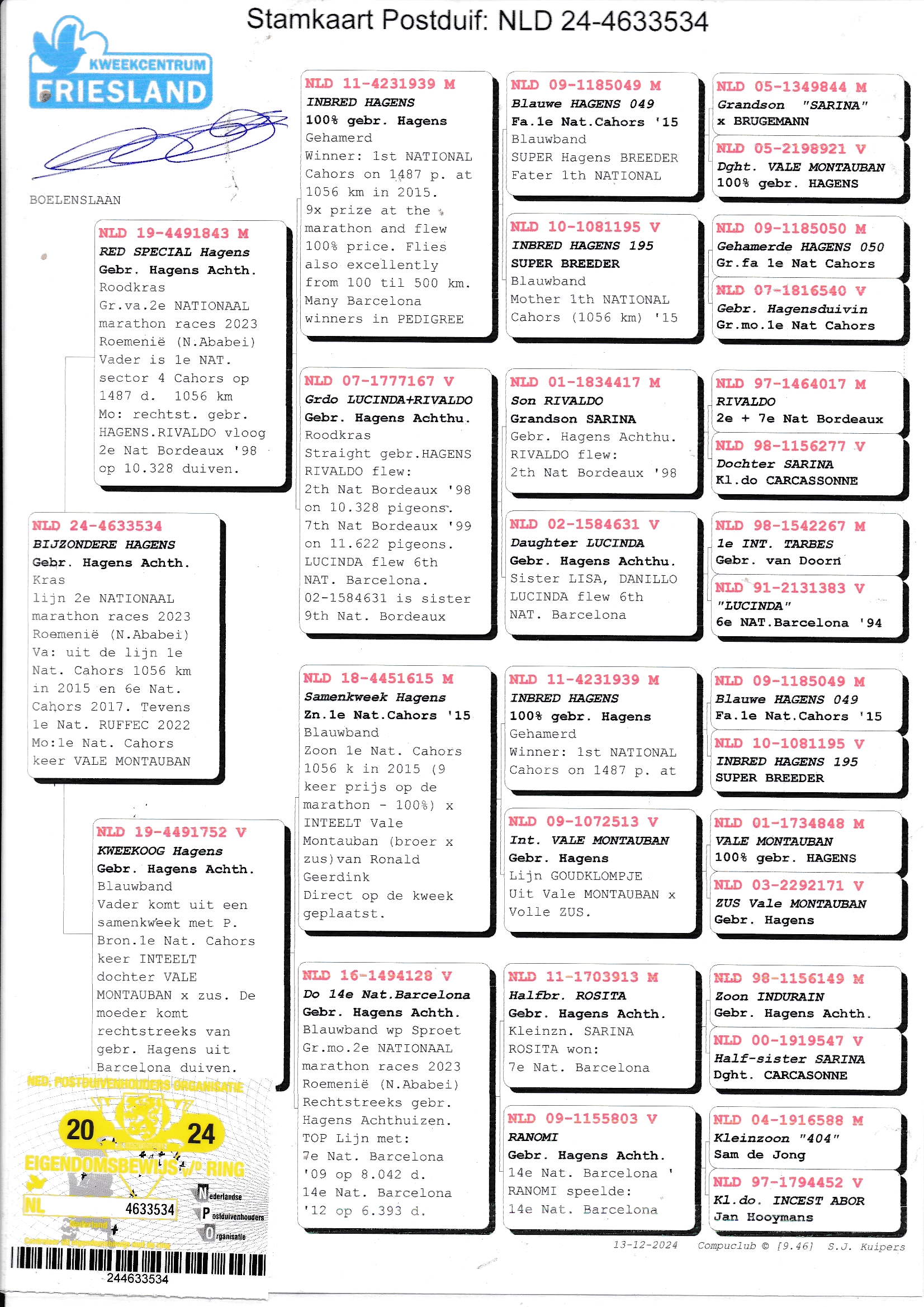 Pedigree Kweekcentrum Friesland, "From Top Racers"