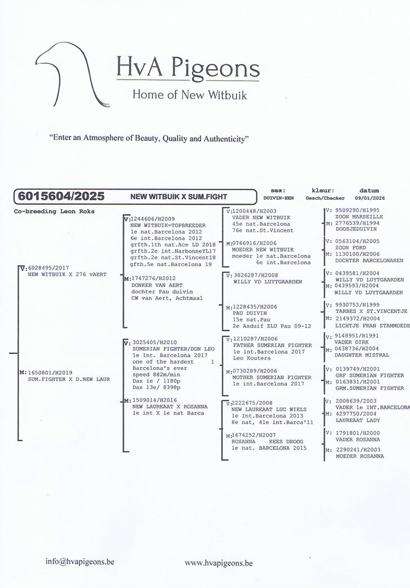 Fathers 1st and 4th national duifkampioen Marathon Ochtendlossing Jongerencompetitie NPO 2025 (De Vries, Grevenbicht NL) are also from New Witbuik x van Aert