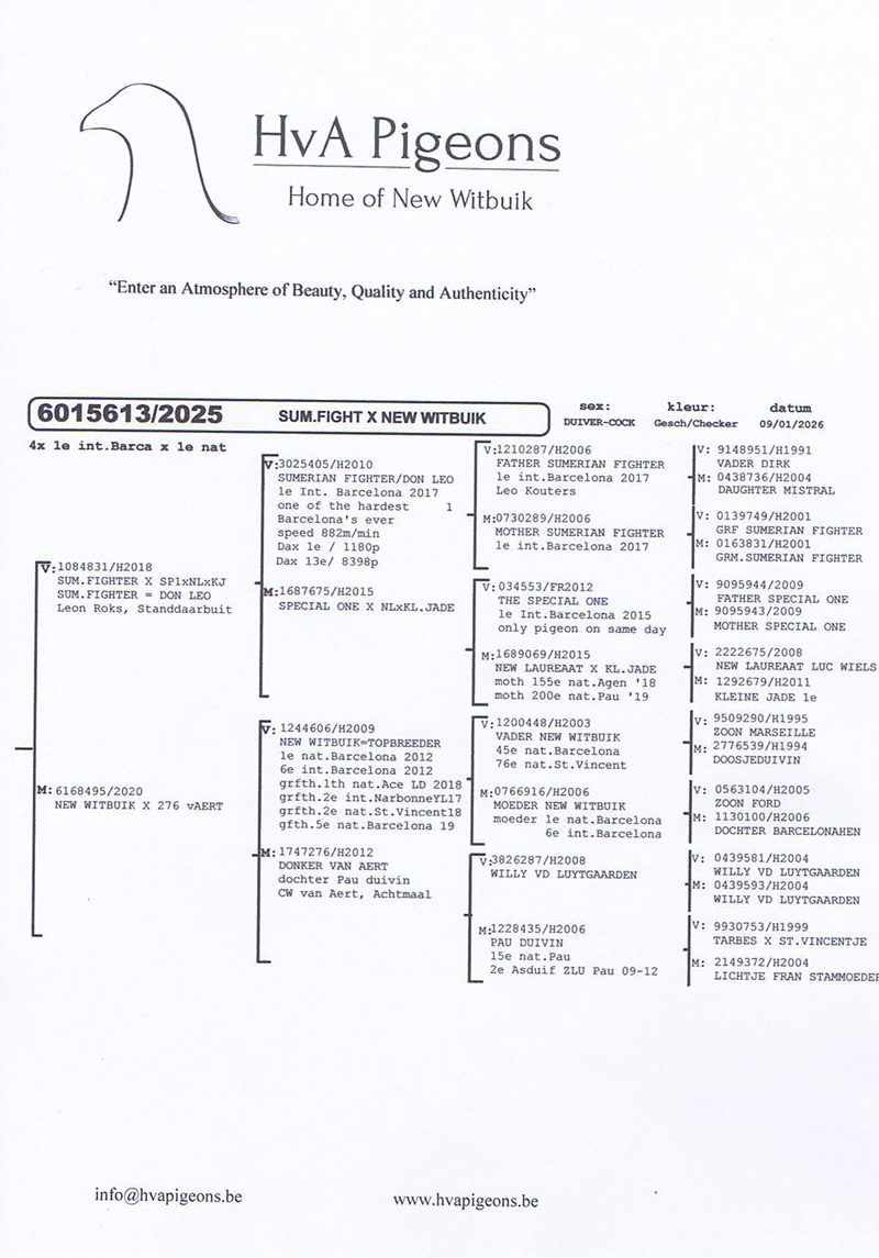 Fathers 1st and 4th national duifkampioen Marathon Ochtendlossing Jongerencompetitie NPO 2025 (De Vries, Grevenbicht NL) are also from New Witbuik x van Aert