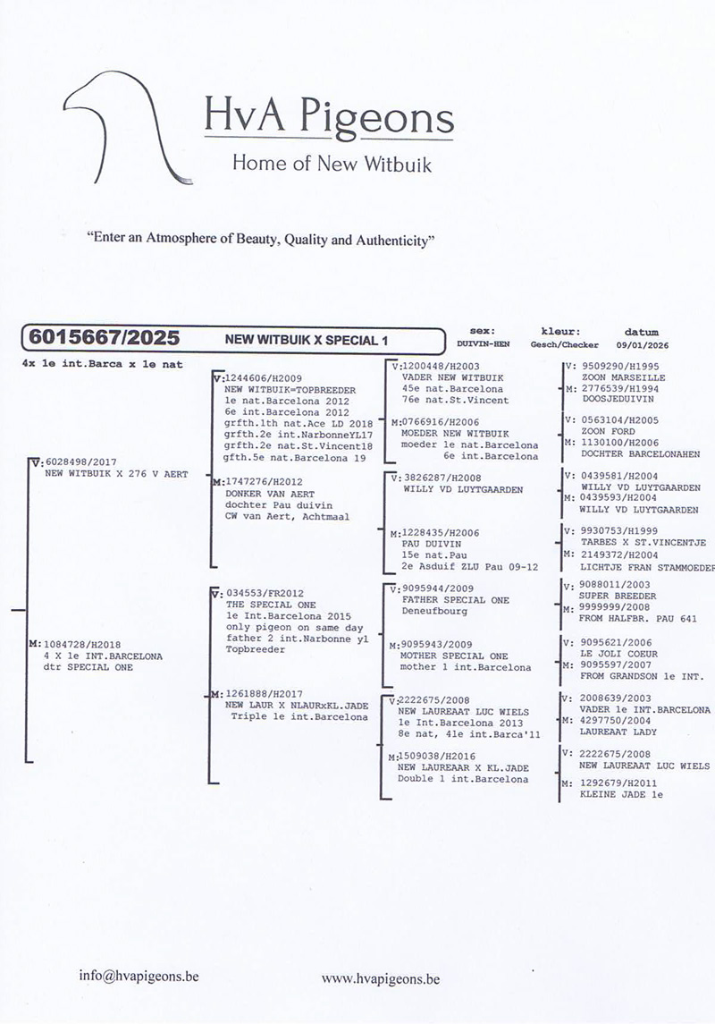 Fathers 1st and 4th national duifkampioen Marathon Ochtendlossing Jongerencompetitie NPO 2025 (De Vries, Grevenbicht NL) are also from New Witbuik x van Aert
