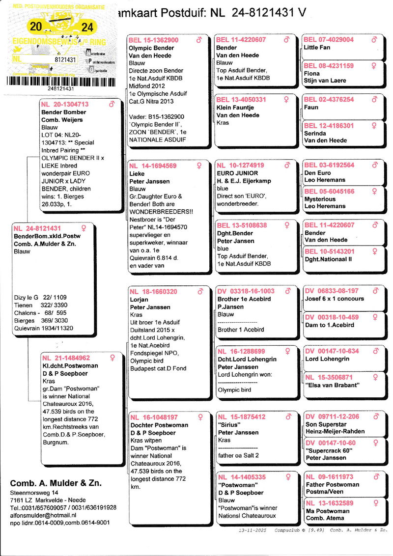 Moeder orig. D. & P. Soepboer kldtr Postwoman 1e Nat. Chateauroux 47.539 d.