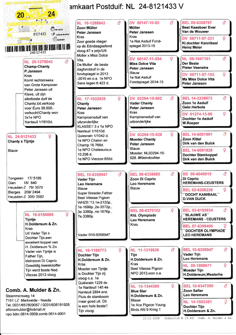 Vader “Champ Chanty” Peter Janssen direct ui super duif “Chanty”