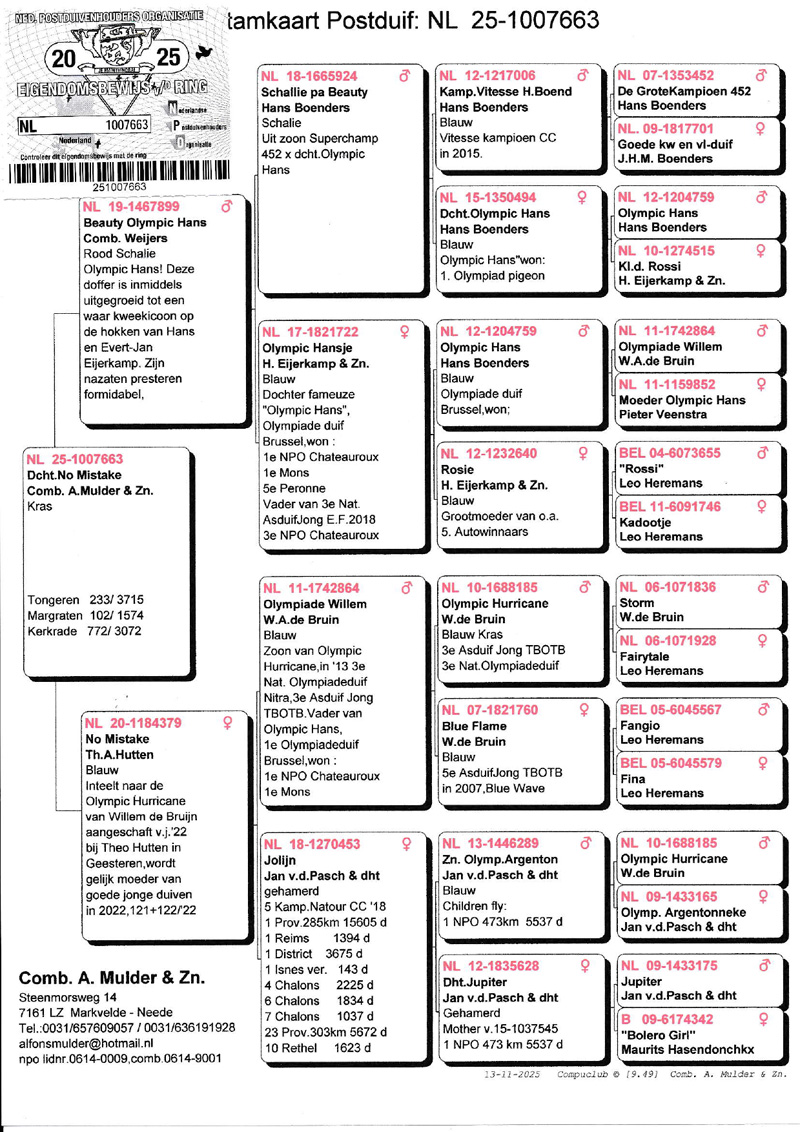 Moeder “No Mistake” inteelt naar Olympic Hurricane W.A. de Bruijn