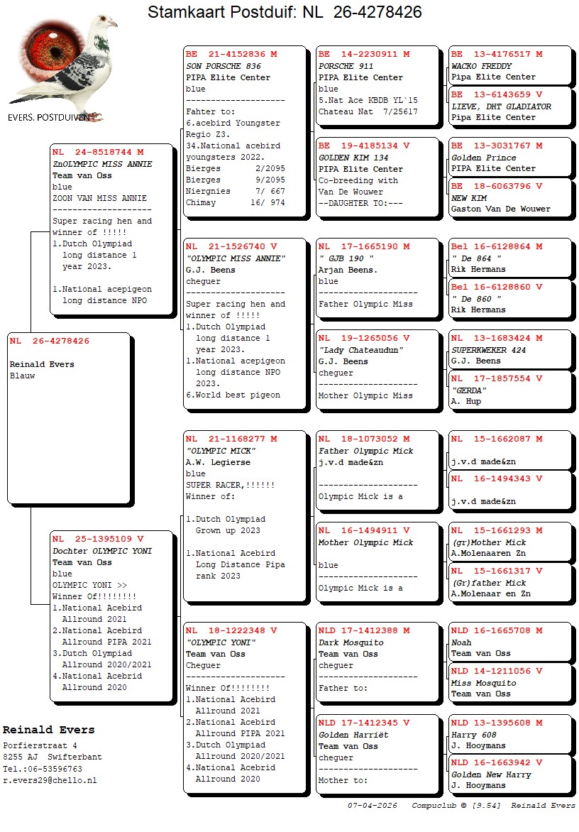 Pedigree Olympic Yoni, Olympic Mick, Olympic Miss Annie